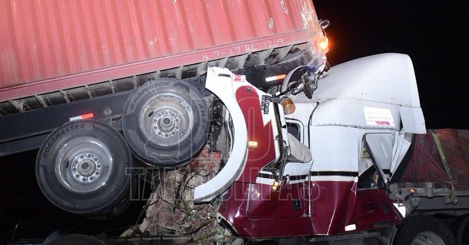 Choque de "titanes" deja a 2 choferes lesionados en la carretera Zaragoza-Victoria