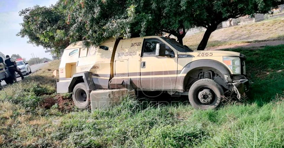 Camión de valores termina fuera del camino tras falla mecánica en Ciudad Victoria