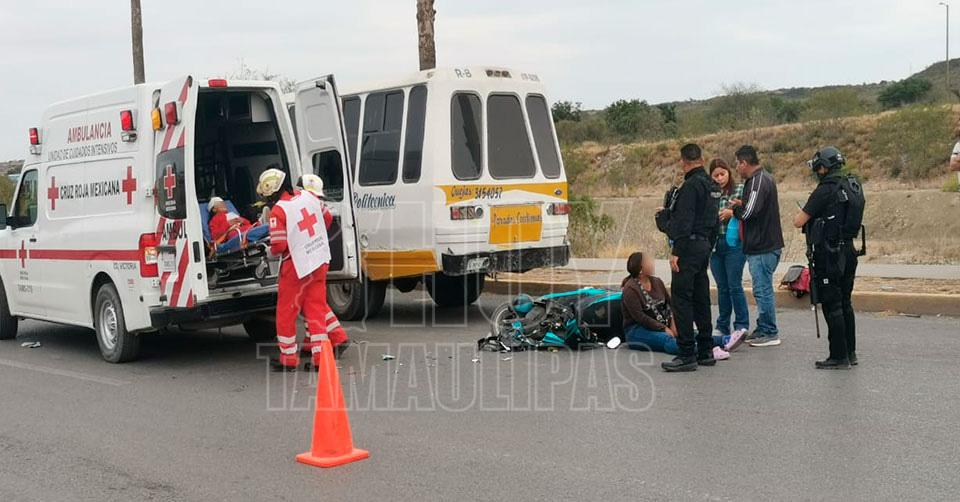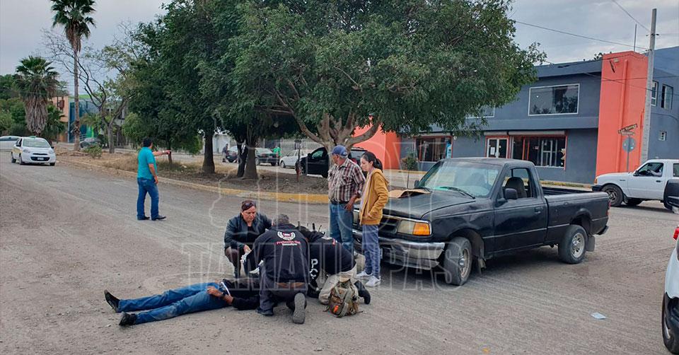 Motociclista se estrella contra camioneta en Ciudad Victoria y resulta lesionado