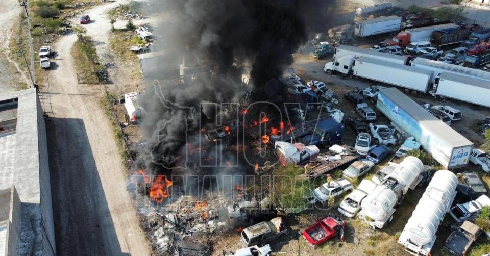 Quema de pastizal se salió de control e incendió autos de yonque en Victoria
