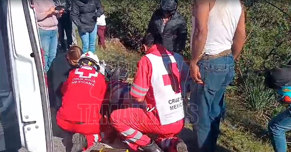 Motociclista cae a barranco de la carretera vieja a Tula; se encuentra grave