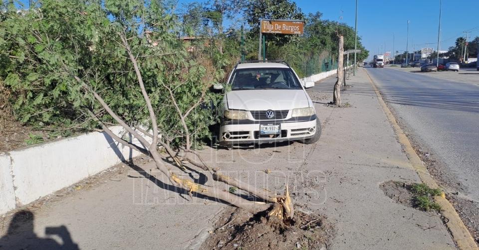 Estrelló su auto contra un árbol y su hijo resultó lesionado, en Ciudad Victoria