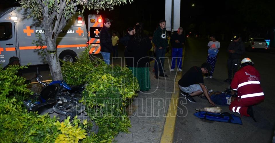 Motociclista resultó lesionado tras accidente en Victoria; se negó a ser trasladado