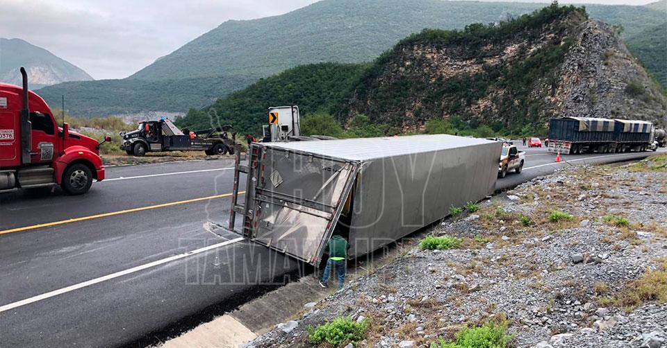 Vuelca tráiler cargado de fresa en la Rumbo Nuevo