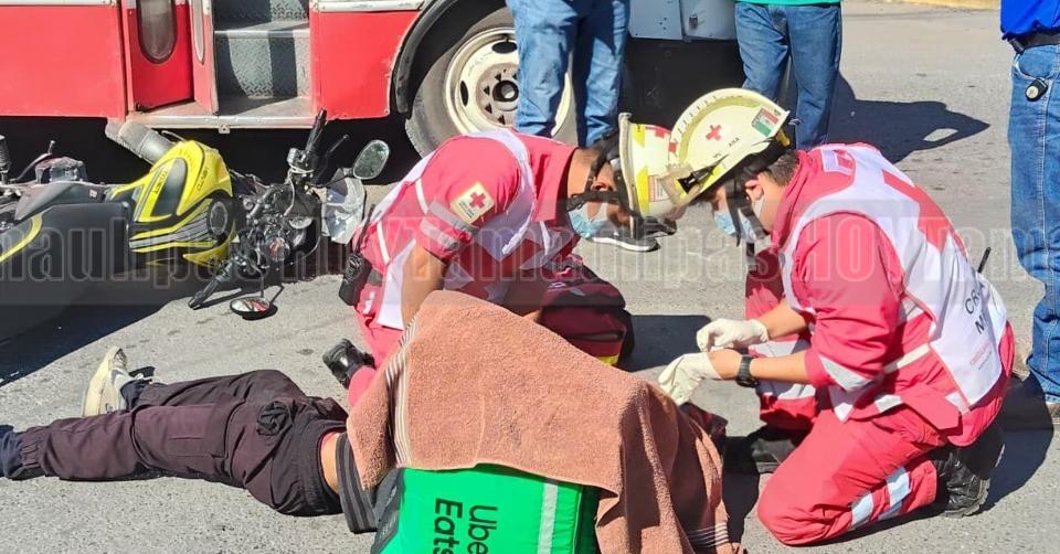 “Micro” embiste a motociclista en el 17 Ocampo de Victoria