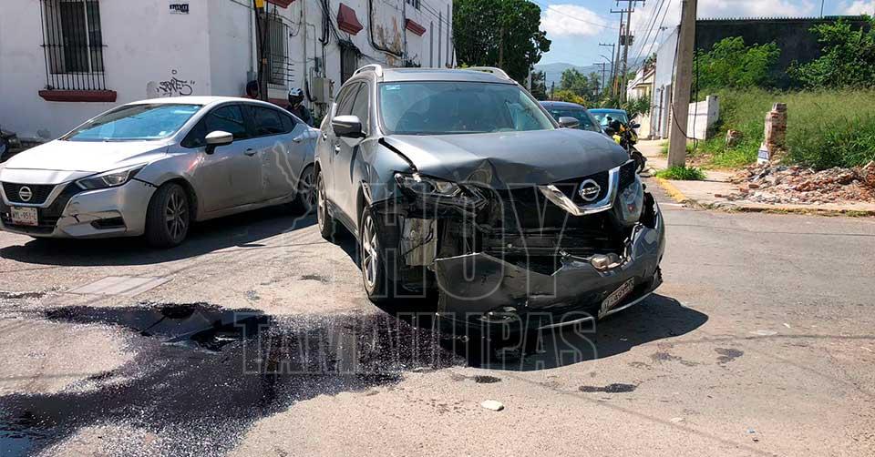 Conductora choca camioneta BMW tras no respetar señal de alto en Ciudad Victoria