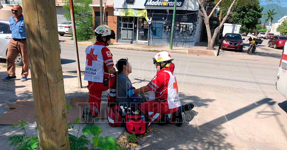 Motociclista repartidora resulta lesionada tras choque en el centro de Ciudad Victoria