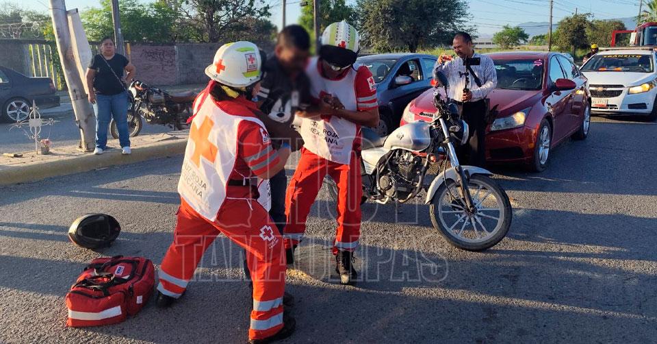 Motociclista lesionado tras choque en la Avenida Sulaimán en Ciudad Victoria