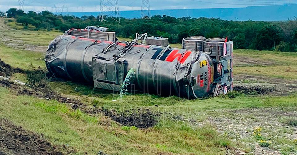 Continúa cerrada la carretera Zaragoza-Victoria por volcadura de pipa
