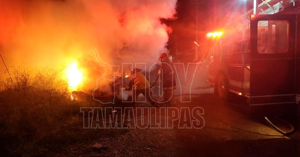 Incendio arrasó con un auto Chevy en la Américo Villarreal en Victoria