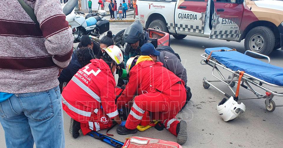 Pareja que viajaba en moto sufre accidente vial en Ciudad Victoria