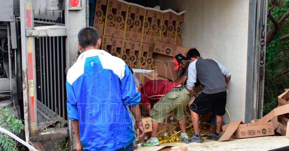 Volcó tráiler cargado con 20 toneladas de tomate en la Rumbo Nuevo; sí, hubo rapiña