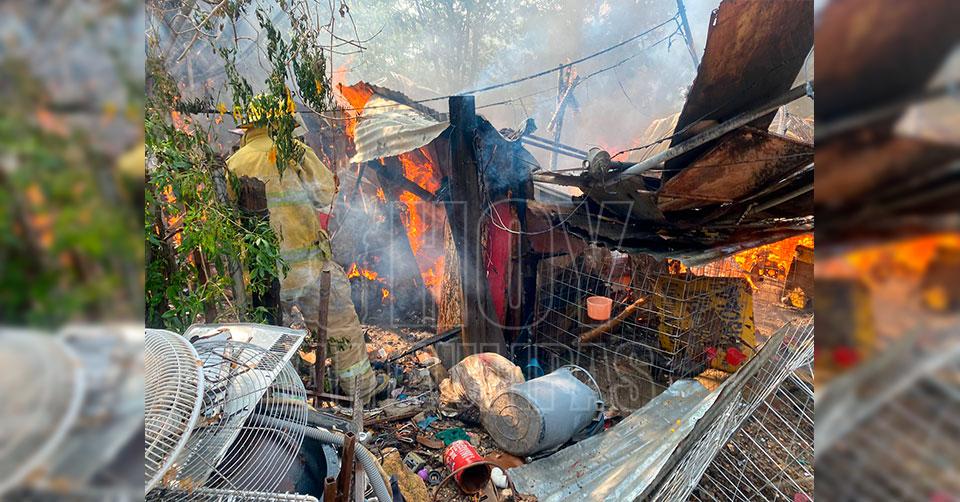 Incendio arrasó con casa de cartón en Victoria; dos gallos y un pato murieron