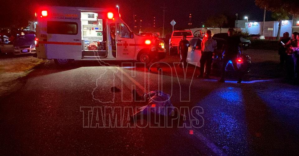 Conductor omite alto y embiste a moto en Ciudad Victoria; dos lesionados