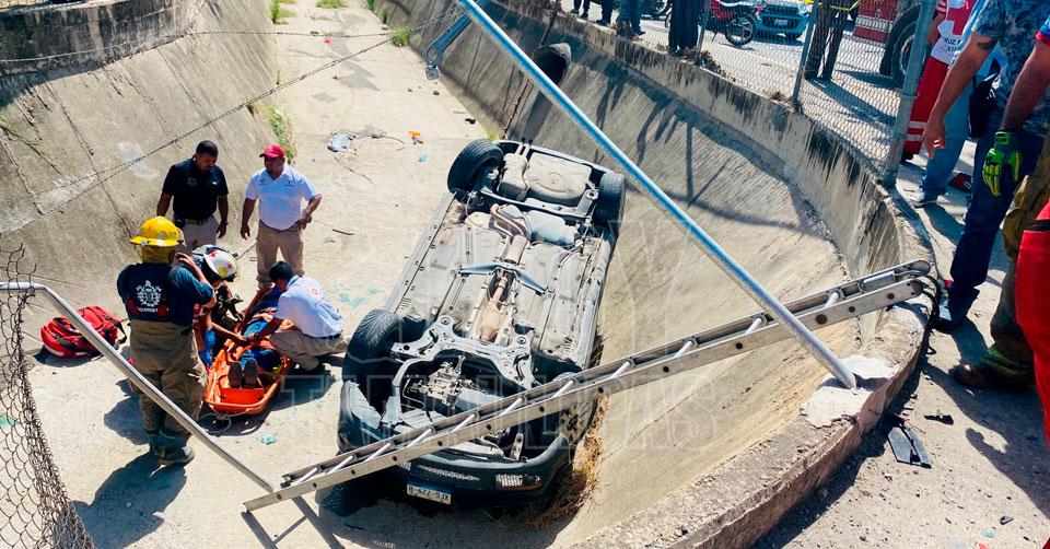 Baja “La Joroba” a exceso de velocidad, vuelca y termina en dren pluvial de Victoria