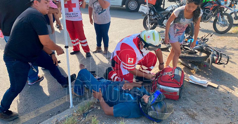 Motociclista lesionado al estrellarse contra automóvil en Victoria