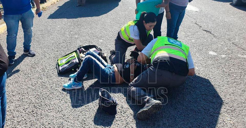Motociclista resultó lesionado al estrellarse con auto en Ciudad Victoria