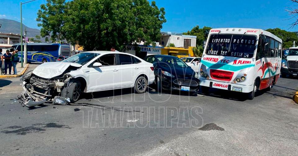 Microbuseros protagonizan choques en Bulevar de Ciudad Victoria