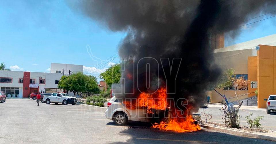 Incendio consume camioneta en el estacionamiento de una iglesia en Ciudad Victoria