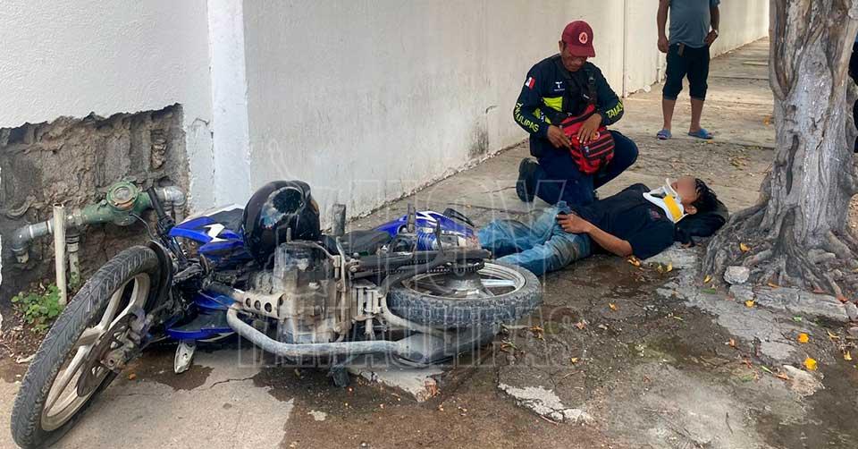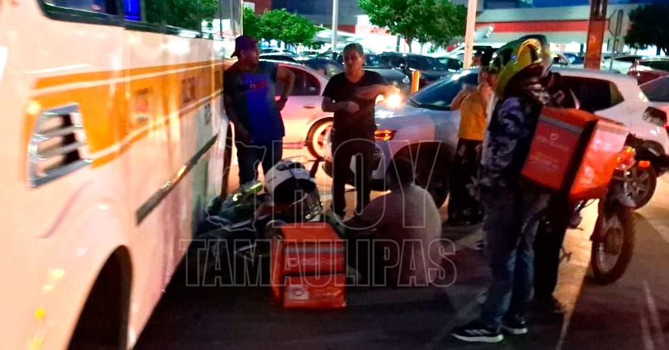Repartidor lesionado tras choque entre moto y microbús en Ciudad Victoria