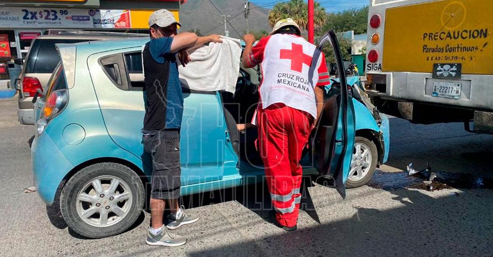 Conductora se distrae y se “ensarta” contra un microbús en Ciudad Victoria