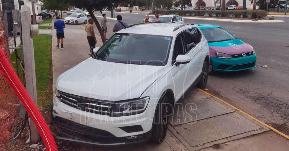 Ebria causa choque y huye en Ciudad Victoria; llegó el hijo y se aventó “la paleta”