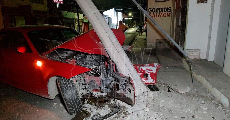 Se les atravesó poste de concreto y les arruinó la borrachera en Ciudad Victoria