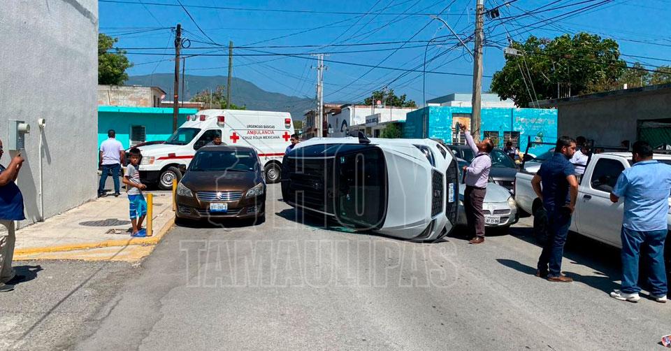 Tres lesionados dejó choque con volcadura en Ciudad Victoria