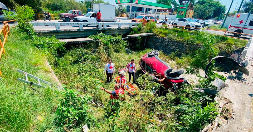 Le dan cerrón y cae volcada en dren pluvial, frente a Walmart Adelitas de Victoria