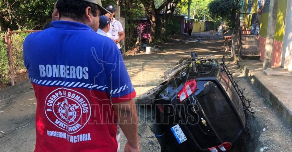 ¡Se lo traga la tierra!, cae auto a socavón en Ciudad Victoria