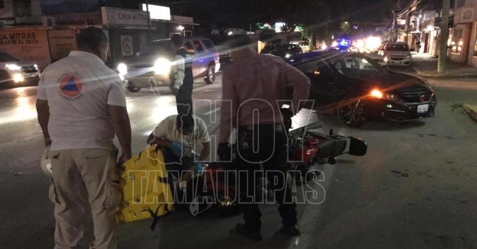 Conductora se pasa alto y tumba a motociclista en Ciudad Victoria