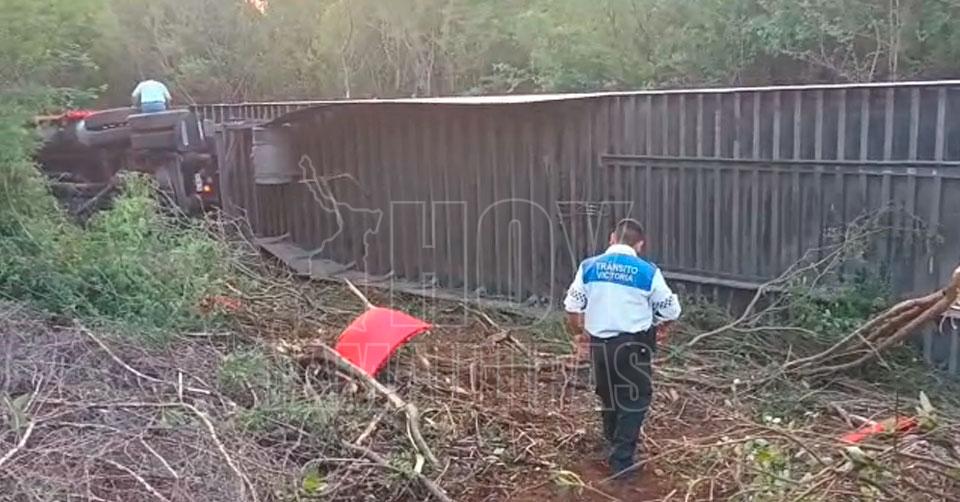 Trailero se duerme y vuelca fuera de la carretera en la vía Rumbo Nuevo