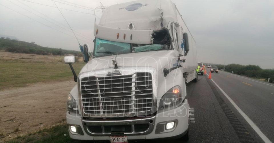 Se zafa llanta de tráiler y casi mata a chofer de otro tractocamión en la Zaragoza-Victoria