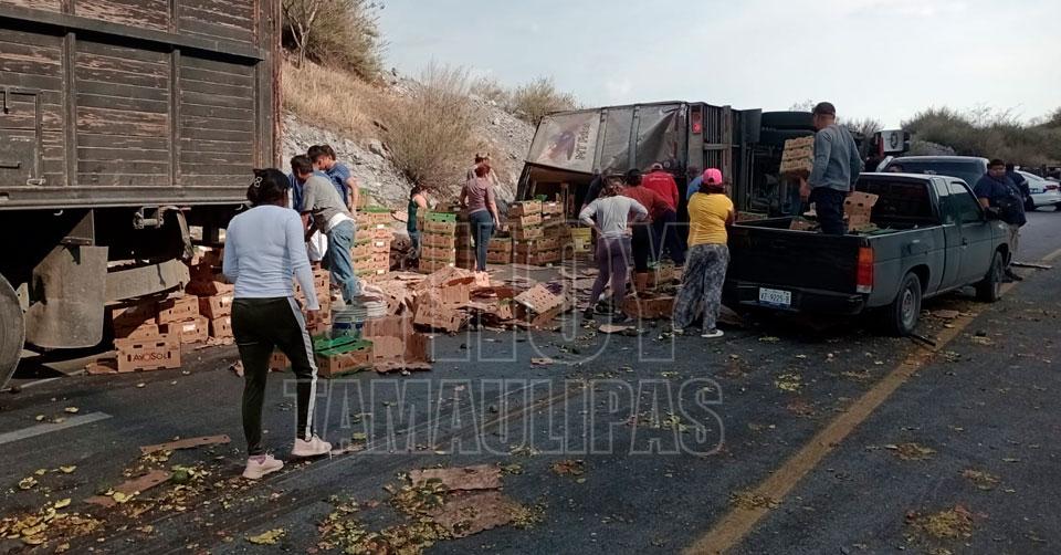 Dos lesionados y rapiña de aguacate dejó choque de tráileres en la Rumbo Nuevo