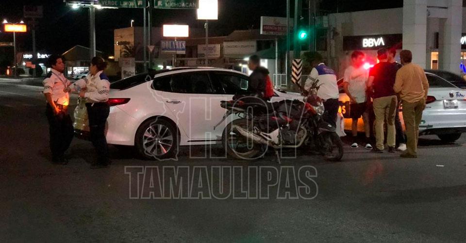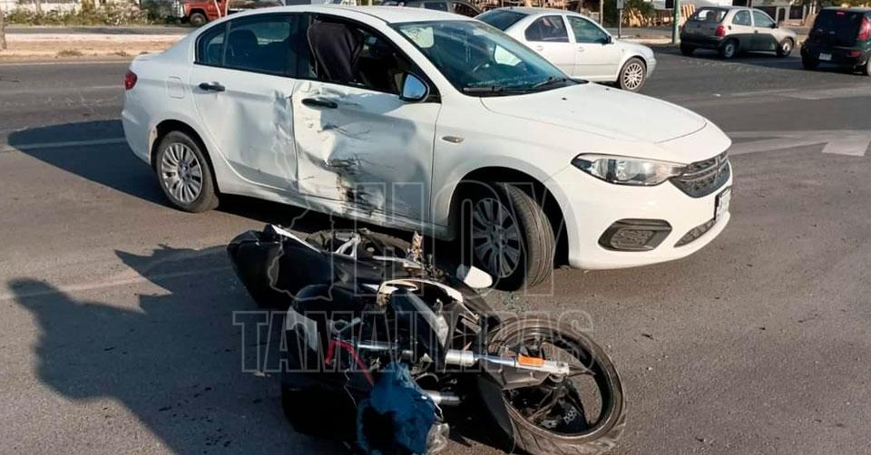 Motociclista se pasa alto y se “ensarta” contra auto en Ciudad Victoria
