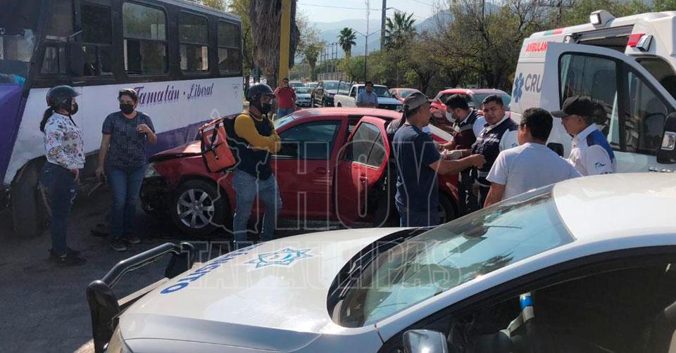 Jetta chocó contra microbús en la Calzada Tamatán; tres lesionados