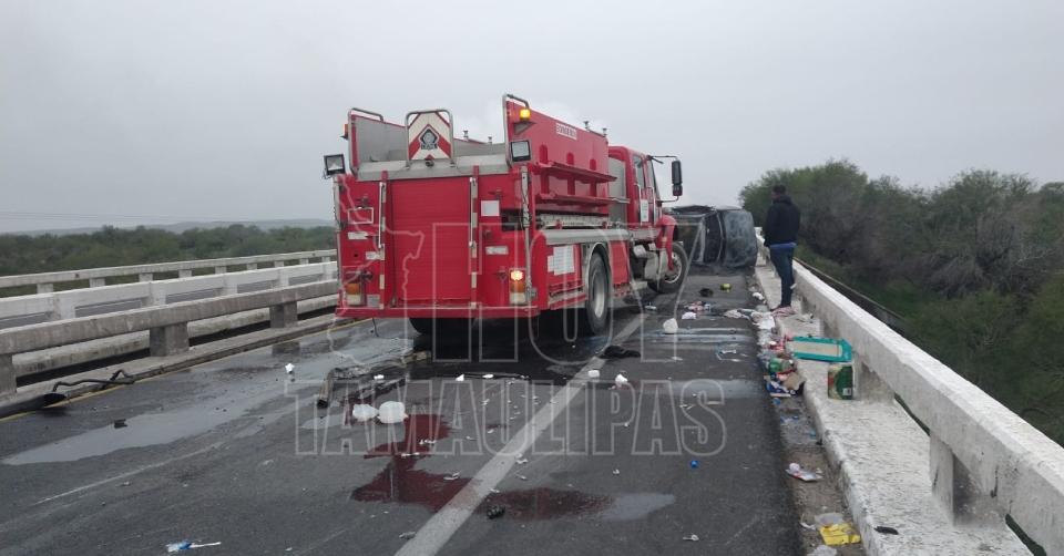 Cuatro lesionados deja volcadura e incendio en la Victoria-Matamoros