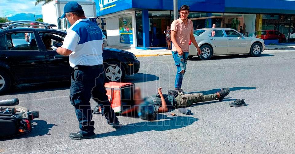 Conductora tumba a motociclista repartidor en Ciudad Victoria