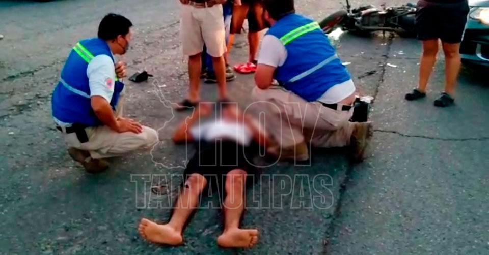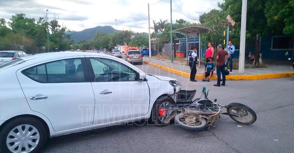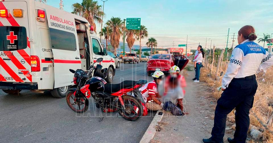 Conductora tumba a motociclista en la Avenida La Paz de Ciudad Victoria
