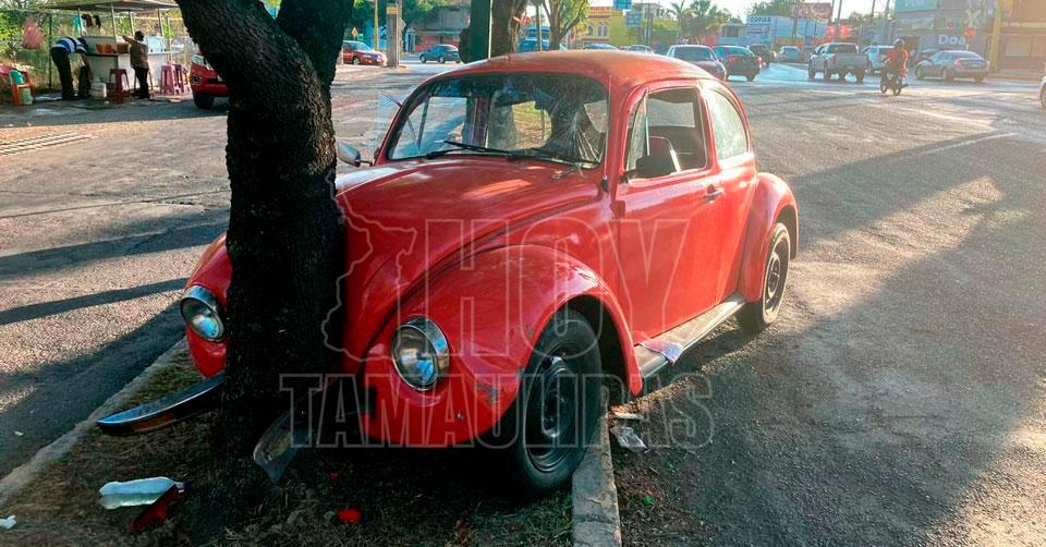 Se le descontrola ‘vocho’ y se estrella contra un árbol en Ciudad Victoria