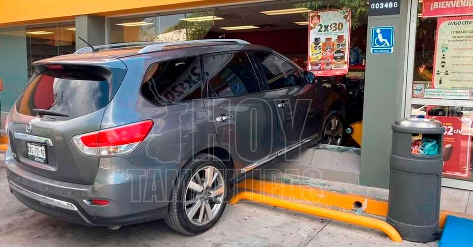 Jovencita se metió con todo y camioneta a un Oxxo en Ciudad Victoria