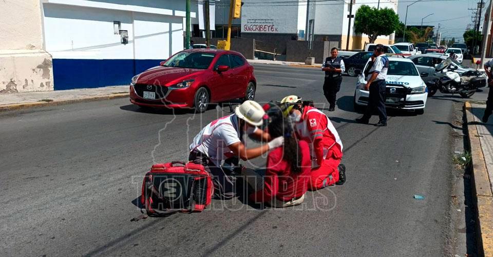 Conductora da vuelta prohibida y tumba a motociclista en Ciudad Victoria