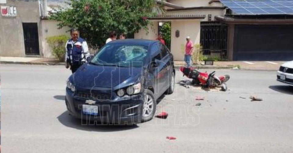 Motociclista lesionado al estrellarse contra auto en Ciudad Victoria
