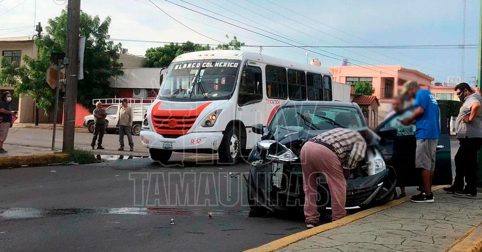 Choque entre microbús y automóvil deja un lesionado en Ciudad Victoria