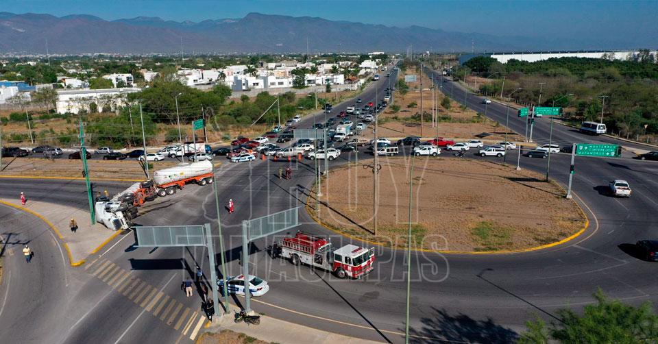 Dos lesionados al volcar pipa cargada con 31 mil litros diésel en Victoria