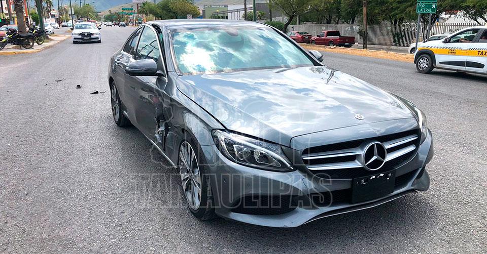 Conductora “se vende” al chocar su auto americano contra Mercedes-Benz en Ciudad Victoria