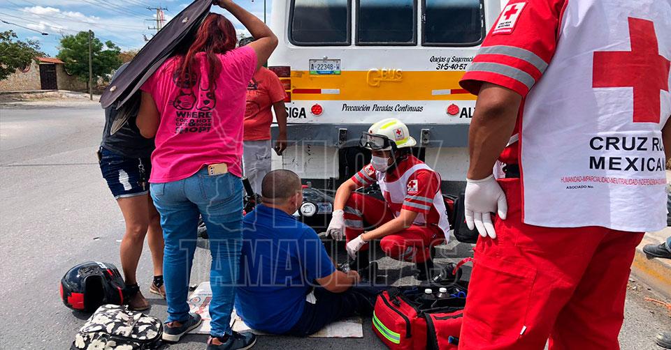 Motociclista despistado se ensarta en la parte trasera de microbús en Ciudad Victoria