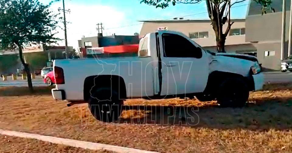 Abandonan camioneta tras treparla a camellón en Ciudad Victoria