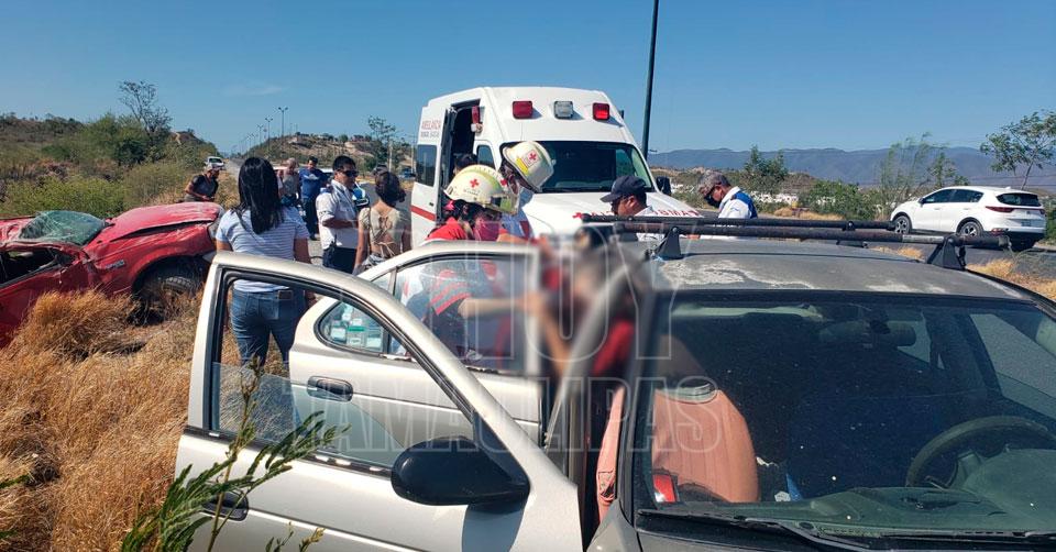 Volcadura deja tres lesionados y un perrito extraviado en Ciudad Victoria