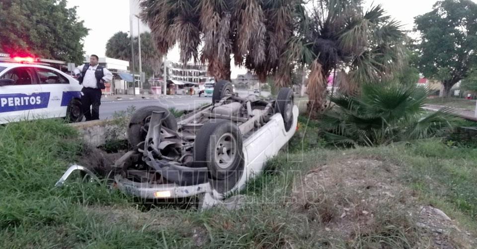 Policía estatal se duerme al volante y vuelca en Ciudad Victoria